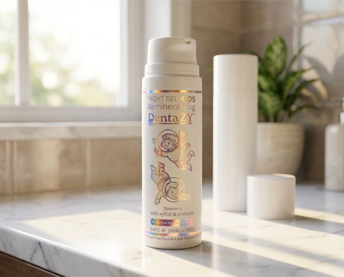 Стартова паста за зъби, специално разработена за деца с (течен емайл) хидроксиапатит. Нежната формула почиства деликатно и запазва естествения баланс на устната кухина. Натуралният мус подготвя зъбите за пълната система DENTAZY® за ден и нощ.